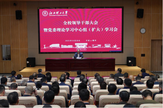 本网讯 10月28日,江西理工大学召开全校干部大会暨党委理论学习中心组(扩大)学习会,传达学习党的二十届四中全会精神,部署学校学习宣传和贯彻落实工作。校党委书记刘祖文主持会议并领学全会精神。在家校领导、党委理论学习中心组成员、全体中层干部共同参与学习。