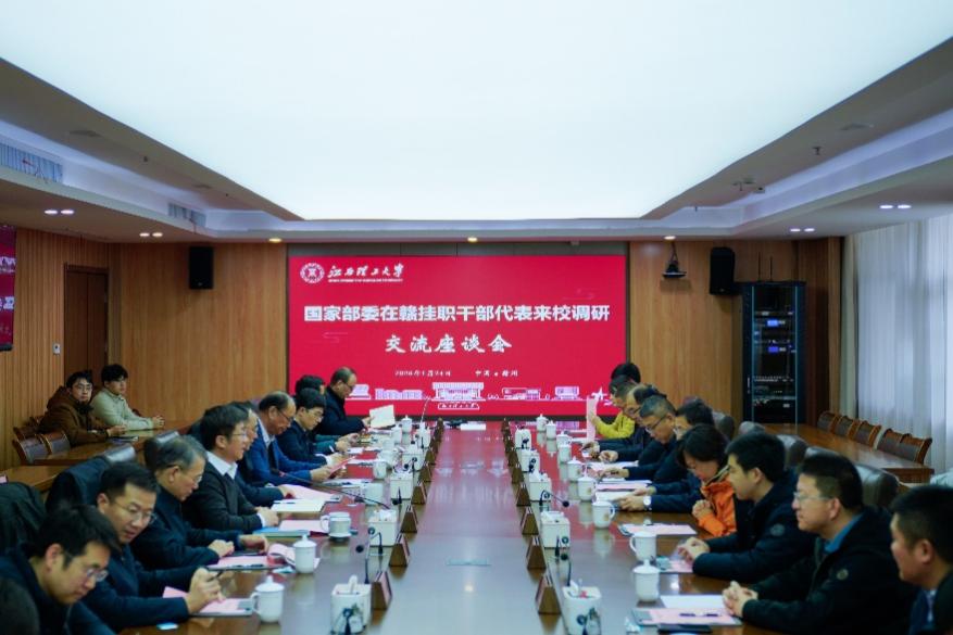 座谈会上,国家部委在赣挂职干部代表对学校教育科技人才一体化发展战略布局给予高度评价,并就校地合作、部门联动、科技创新、成果转化、人才培养等内容进行了深入交流。