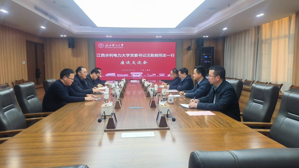 本网讯 1月25日,江西水利电力大学党委书记汪胜前、副校长谢彪一行来校交流。我校党委书记刘祖文,校党委常委、宣传部部长盛晓明出席座谈会,学校党办校办、党委组织部有关负责人参加会议。
