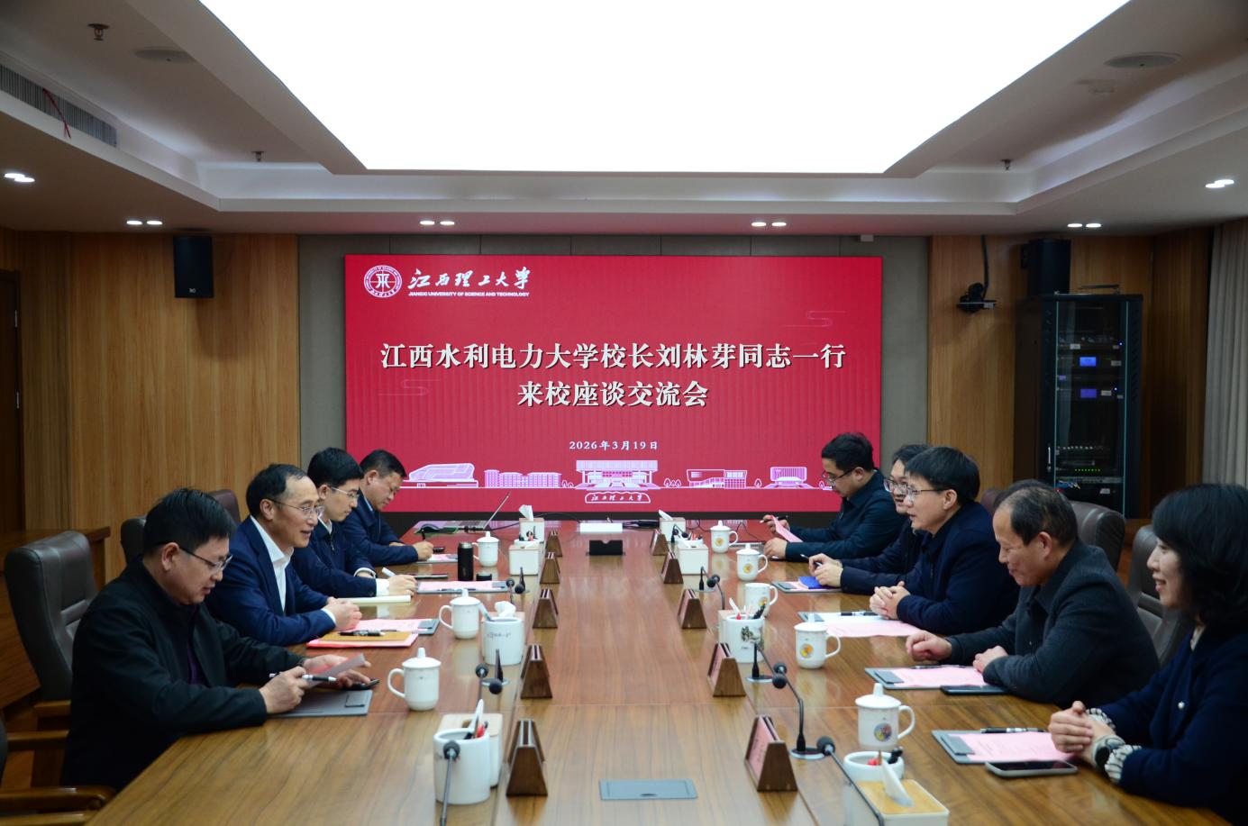 本网讯  3月19日,江西水利电力大学校长刘林芽,党委委员、副校长张兴旺一行来访我校,并于三江校区(东园)濂溪楼1号会议室座谈交流,我校党委书记刘祖文、副校长汪航参加座谈会。会议由汪航主持。