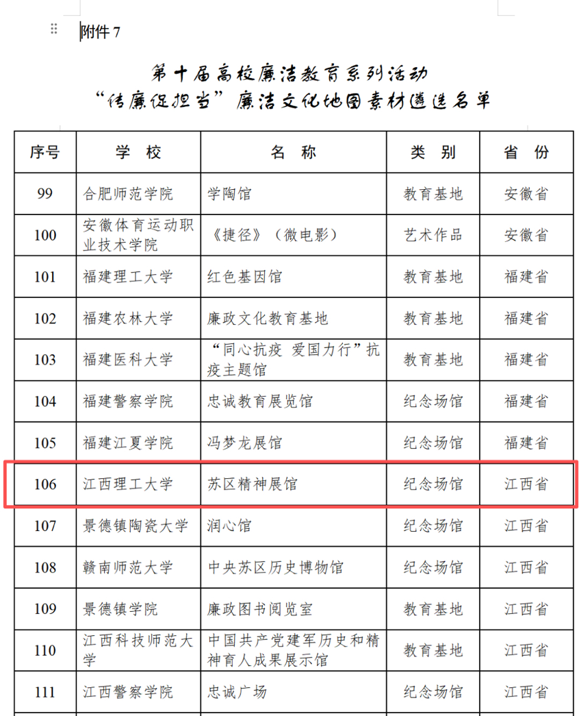 本网讯 近日,教育部以“清风育德守初心 廉洁笃行担使命”为主题组织开展了第十届高校廉洁教育系列活动本并公布活动遴选结果。我校共有3件作品成功入选,入选数量位列江西省高校第一,充分展现了学校在廉洁文化建设和思想政治教育工作中的扎实成效与突出实力。