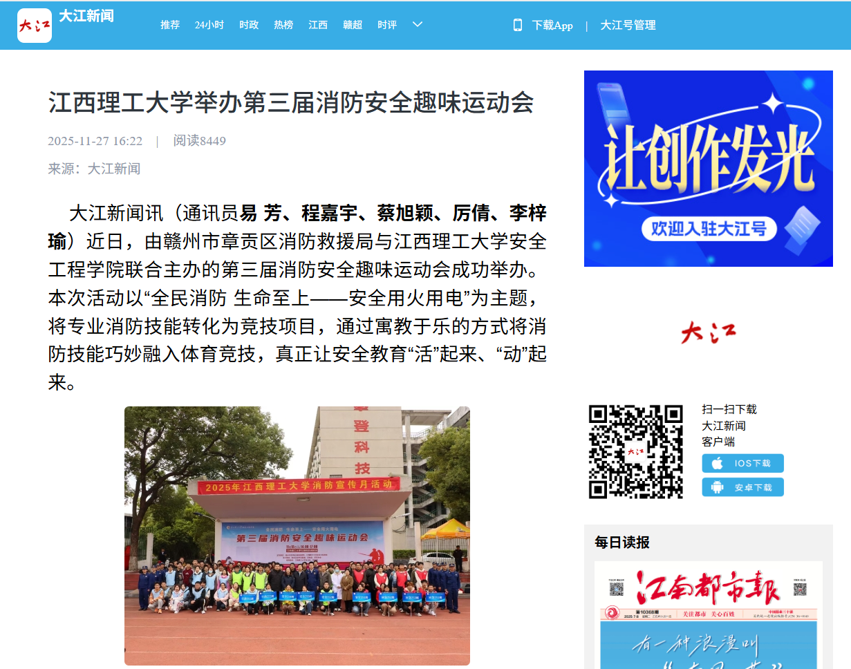 本次消防安全趣味运动会,既是一次校园安全文化建设的生动实践,更是一堂深刻的生命安全教育课。通过将专业消防知识转化为趣味竞技项目,江西理工大学不仅创新了安全教育形式,更传递出全面关怀学生成长、注重实践育人的理念,为培养具有强烈安全意识和应急处置能力的新时代青年学子奠定了坚实基础。