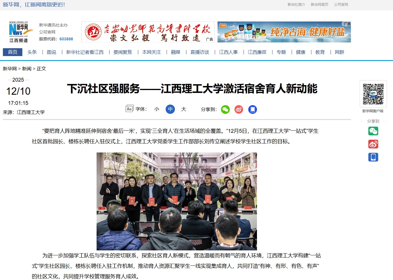 《新华网》:下沉社区强服务——江西理工大学激活宿舍育人新动能
