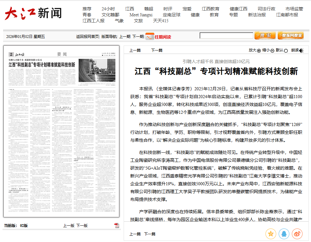 《江西日报》:江西“科技副总”专项计划精准赋能科技创新