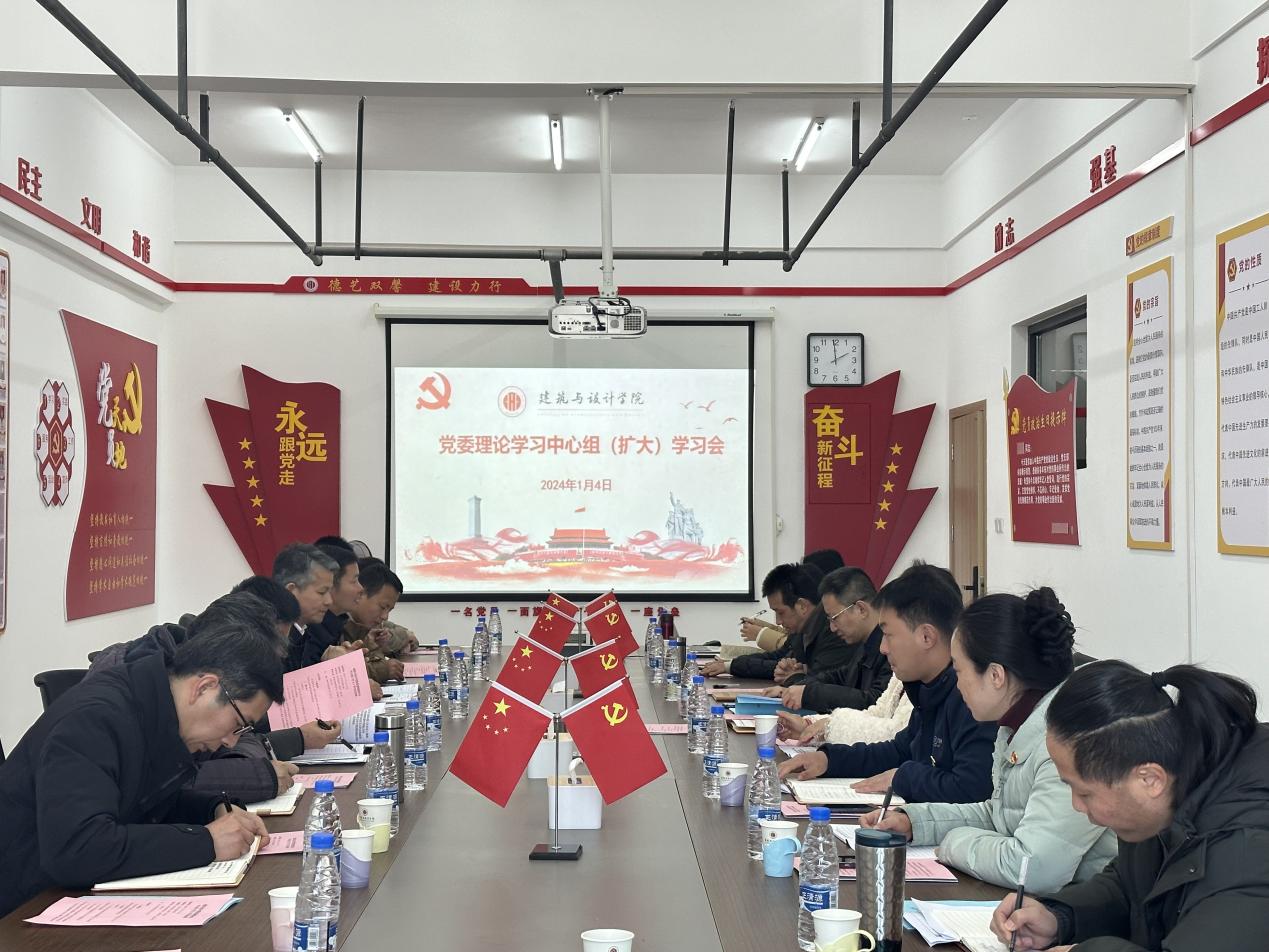 本网讯   1月4日,建筑与设计学院党委理论学习中心组(扩大)学习会在三江校区日新楼308会议室召开。校党委常委、副校长董冰岩出席指导,建筑与设计学院领导班子、党委委员、党支部书记和各系部主任参加会议,会议由学院党委书记周小金主持。