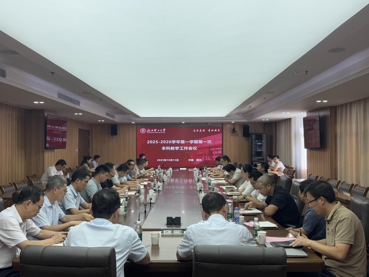 本网讯 10月15日,我校在三江校区濂溪楼三楼2号会议室召开2025-2026学年第一学期第一次本科教学工作会议。校党委常委、副校长宁洁出席会议,督评处、创新创业学院、继续教育学院等职能部门负责人,各学院分管教学副院长,教务处全体成员参加会议。会议由校教务处处长潘春荣主持。