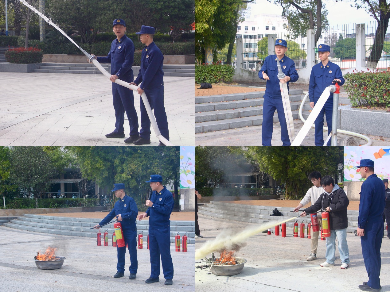 理论宣讲结束后,组织了现场火灾应急演练。过程中,学生们严格按照指导要求,用湿纸巾捂紧口鼻,沿安全出口有序撤离。消防员现场演示了消防器材使用方法,并指导学生现场实操,确保其熟练掌握器材操作技能,真正做到“懂消防、会操作、能应急”。