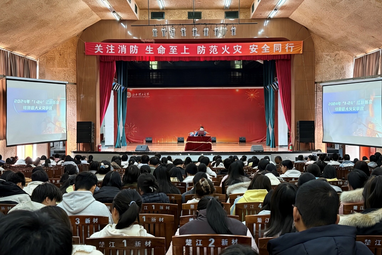 本网讯 3月10日,为培养学生防火安全意识,提升自救互救能力,经济管理学院在红旗校区大礼堂举办消防安全知识讲座暨应急演练活动。江西省赣州市章贡区消防救援大队防火监督参谋胡望林担任主讲,学院2025级全体学生参与。