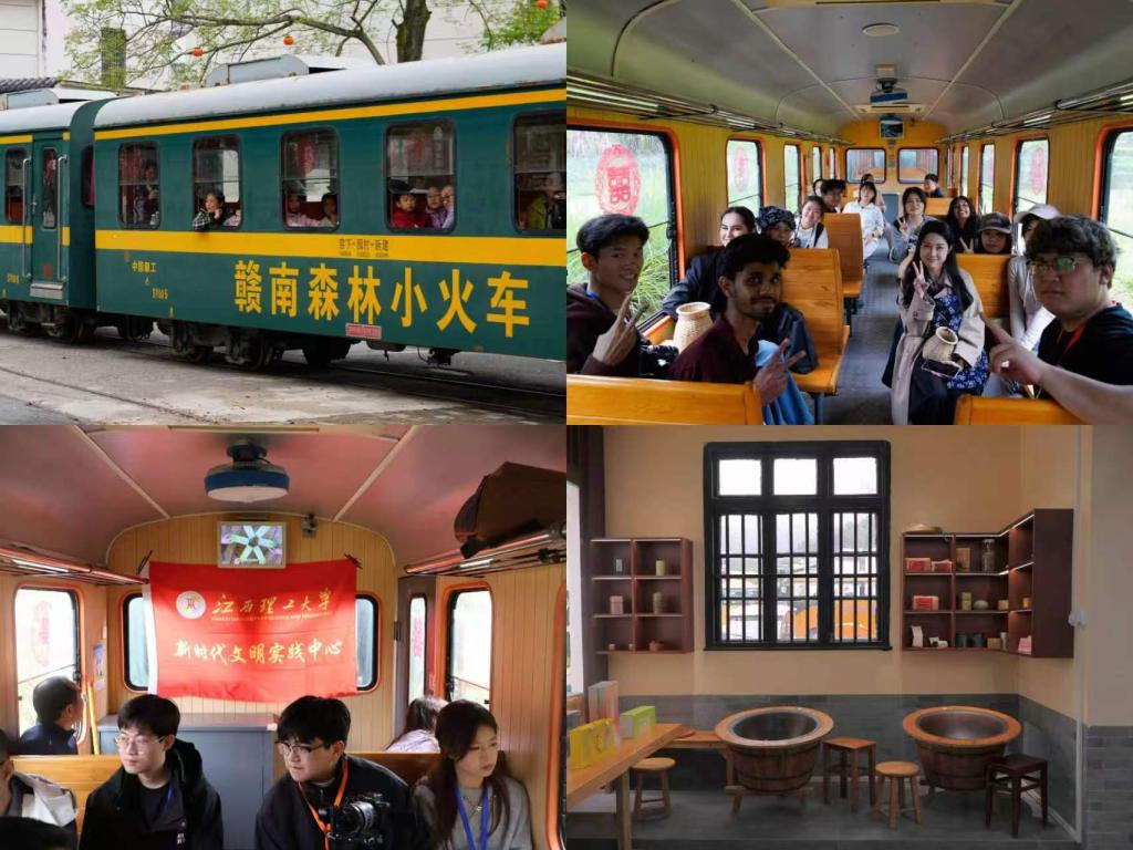 走进梅水乡园村村,师生一同乘坐被誉为 “世界级旅游珍品” 的赣南森林小火车,在穿行青山绿水间追溯其历史变迁,真切感受这条铁路从昔日木材运输专线到如今文旅发展大动脉的华丽蝶变。在和美乡村示范点,大家走进 “5678 时代记忆馆”,细致了解上犹茶文化、客家门匾文化、姓氏文化与非遗文化的传承发展,沉浸式体味乡村深厚的文化底蕴。。